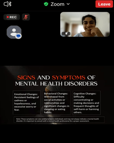 The workshop focused on raising awareness about the significance of mental health, breaking the stigma surrounding mental health disorders, recognizing the signs and symptoms of mental health challenges, and offering practical tips for self-care. Ms. Mathur also emphasized the importance of fostering open conversations about mental wellness, encouraging individuals to seek help when needed.