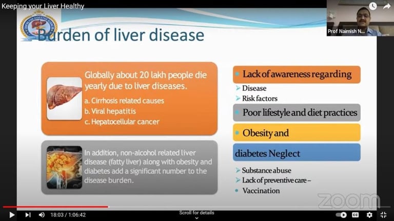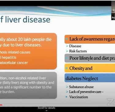 This was followed by a small presentation by Dr. Naimish. To enhance the understanding of the subject and audience engagement, the talk was divided into bite-sized sections, allowing for a deeper understanding of the subject matter. The complex topic of liver health was made simpler under the following headings: